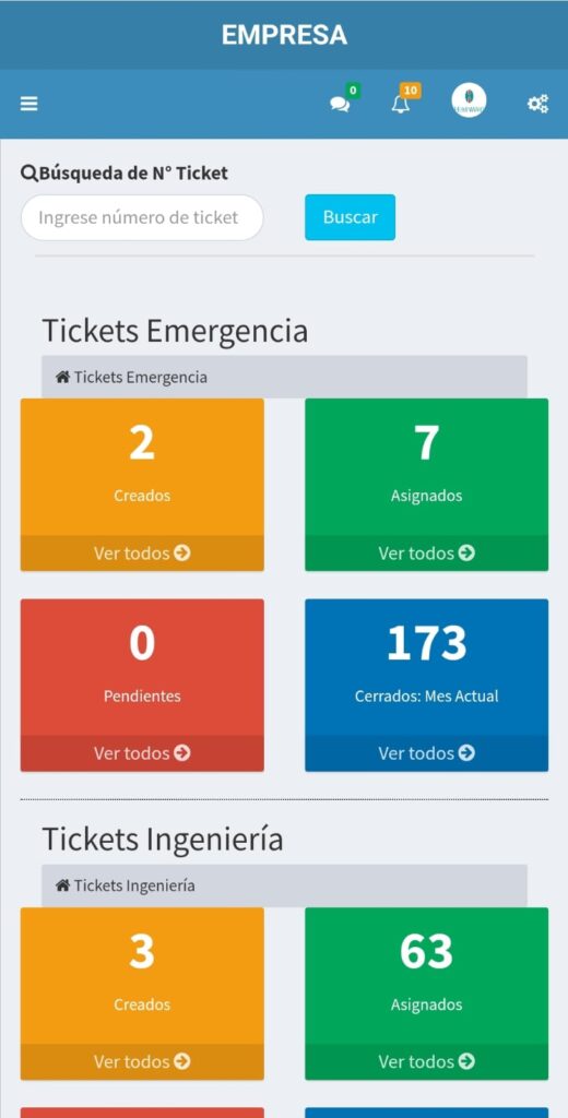 Una app ágil y simple para el equipo en terreno. Permite cerrar tickets, subir evidencias, actualizar estados y registrar avances desde el celular.