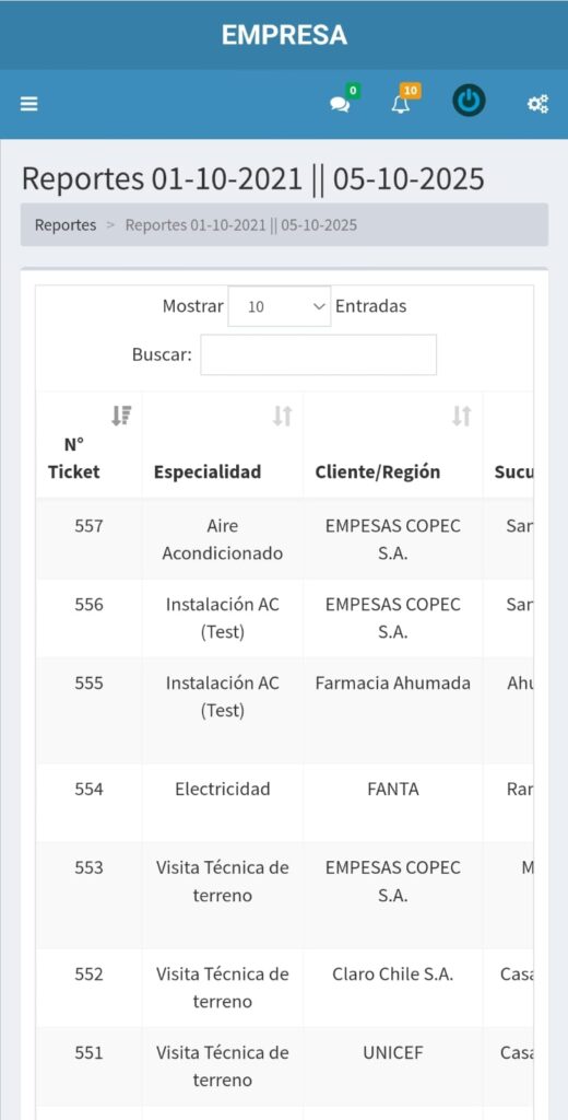 Gracias a la información en tiempo real que entrega la plataforma, es posible generar reportes y estadísticas detalladas sobre los trabajos realizados, incluyendo informes automáticos basados en los tickets generados al instante.