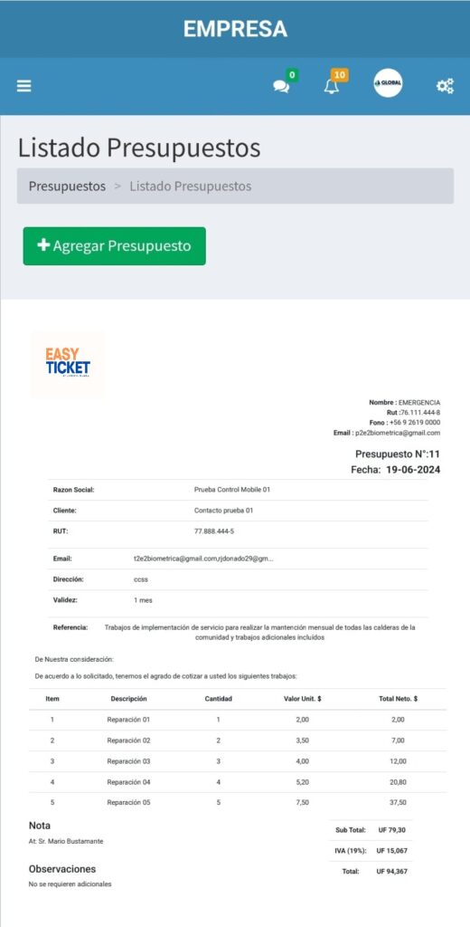 Easyticket es una plataforma digital desarrollada por Control Mobile, que permite gestionar de forma integral todas las operaciones de una empresa que trabaja con equipos técnicos, servicios en terreno o atención de requerimientos.